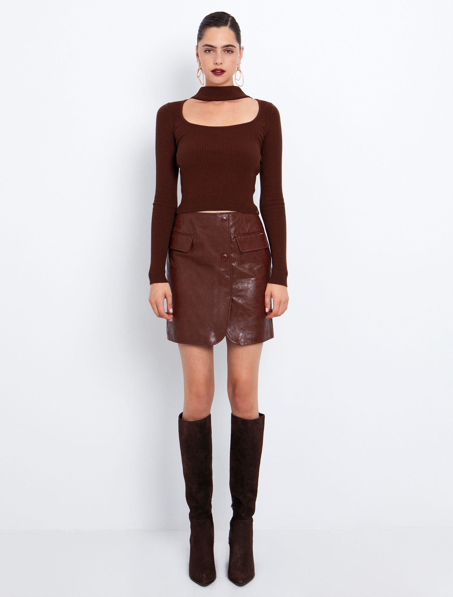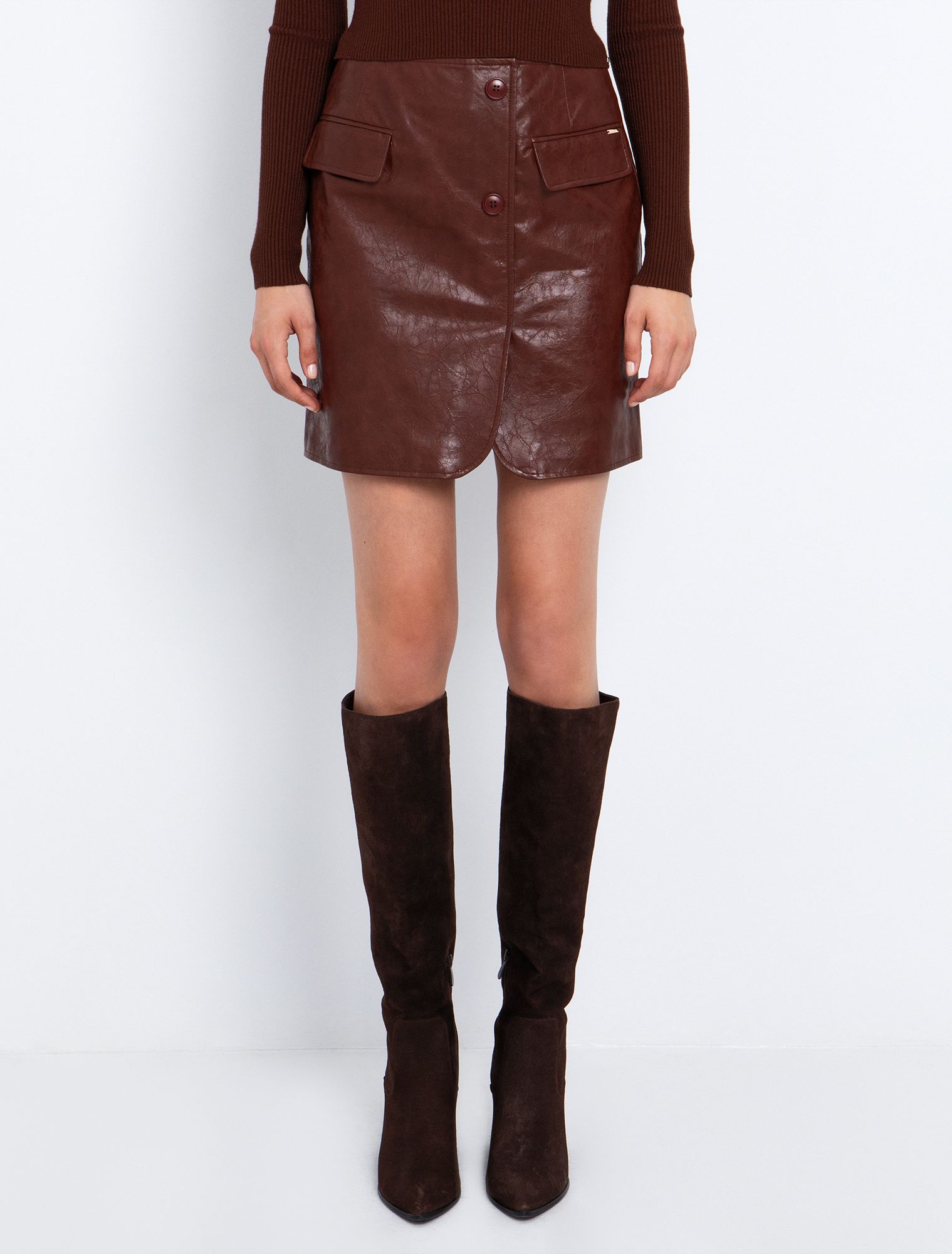 - Ψηλόμεση φούστα σε τσαλακωμένη όψη δέρματος