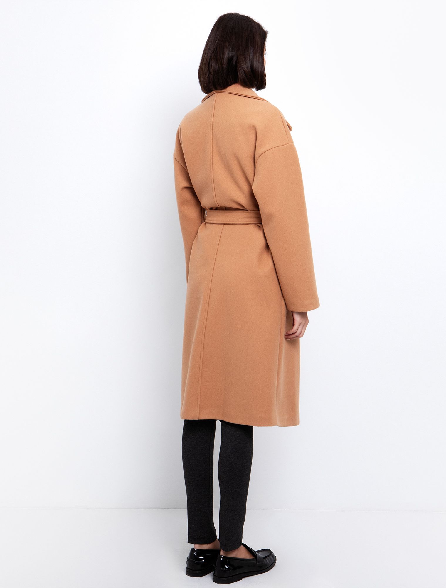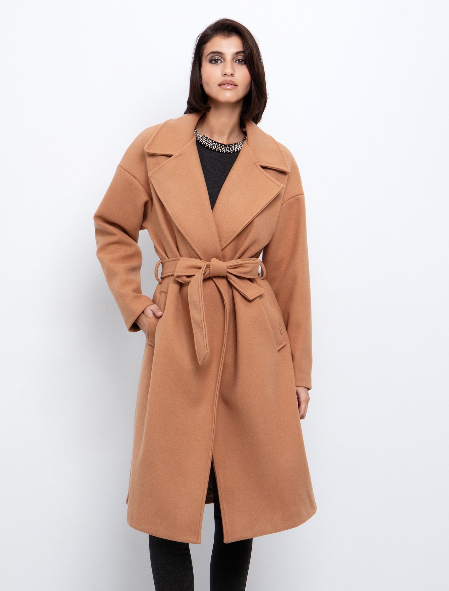 Μακρύ παλτό με ζώνη & φαρδύ πέτο