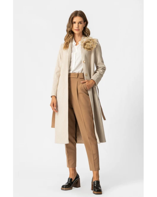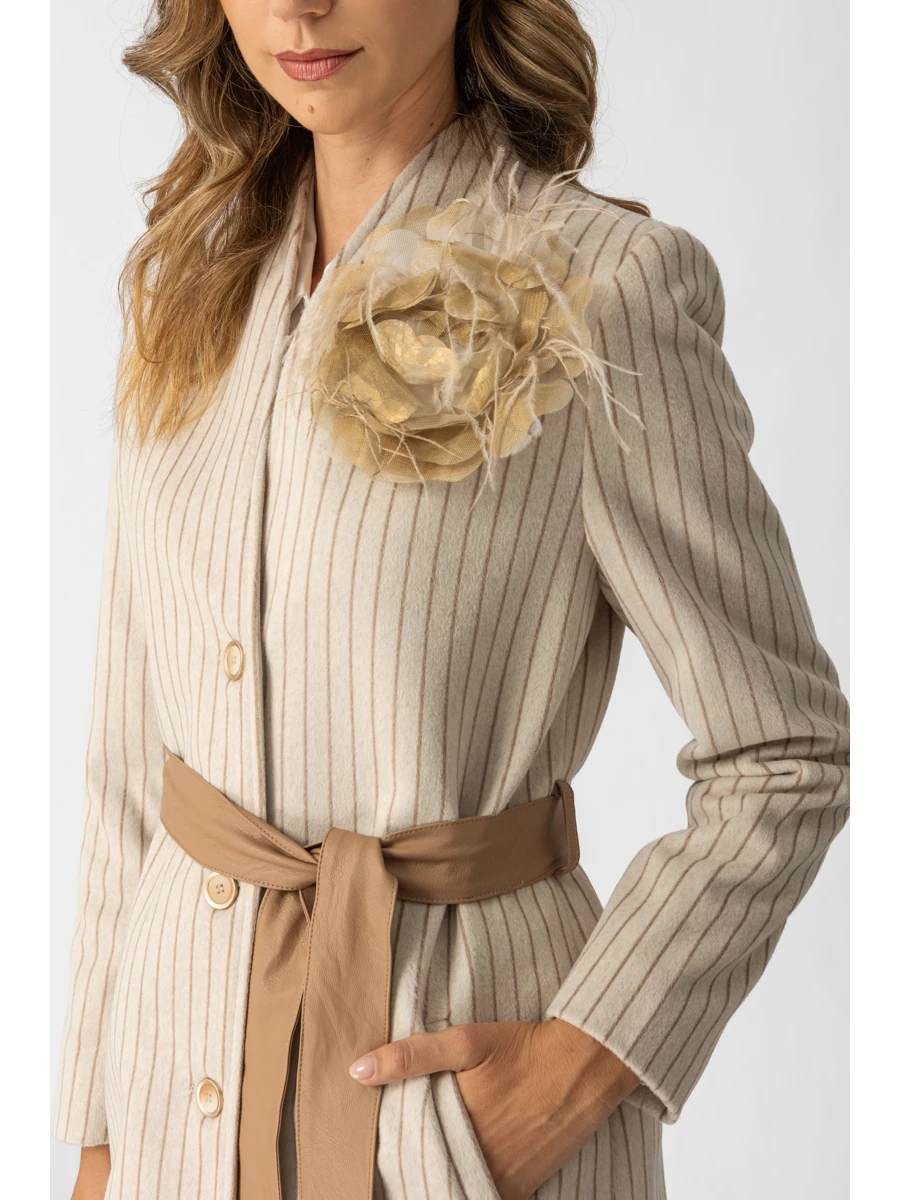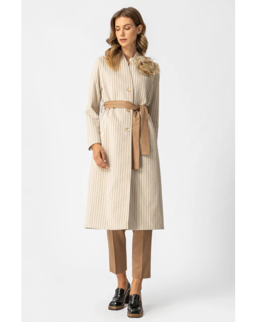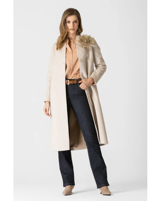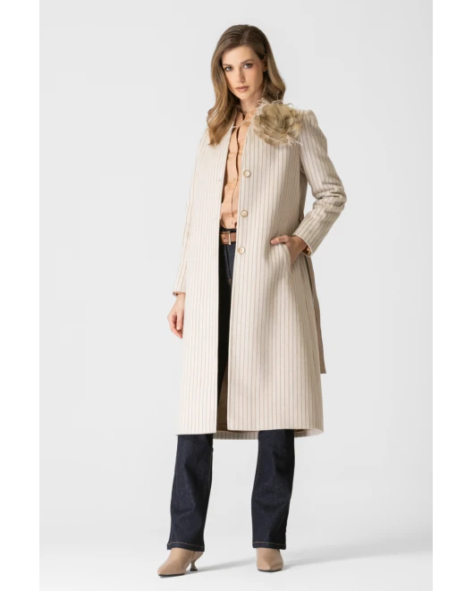 Παλτό ριγέ σε ύφασμα χνουδωτό.