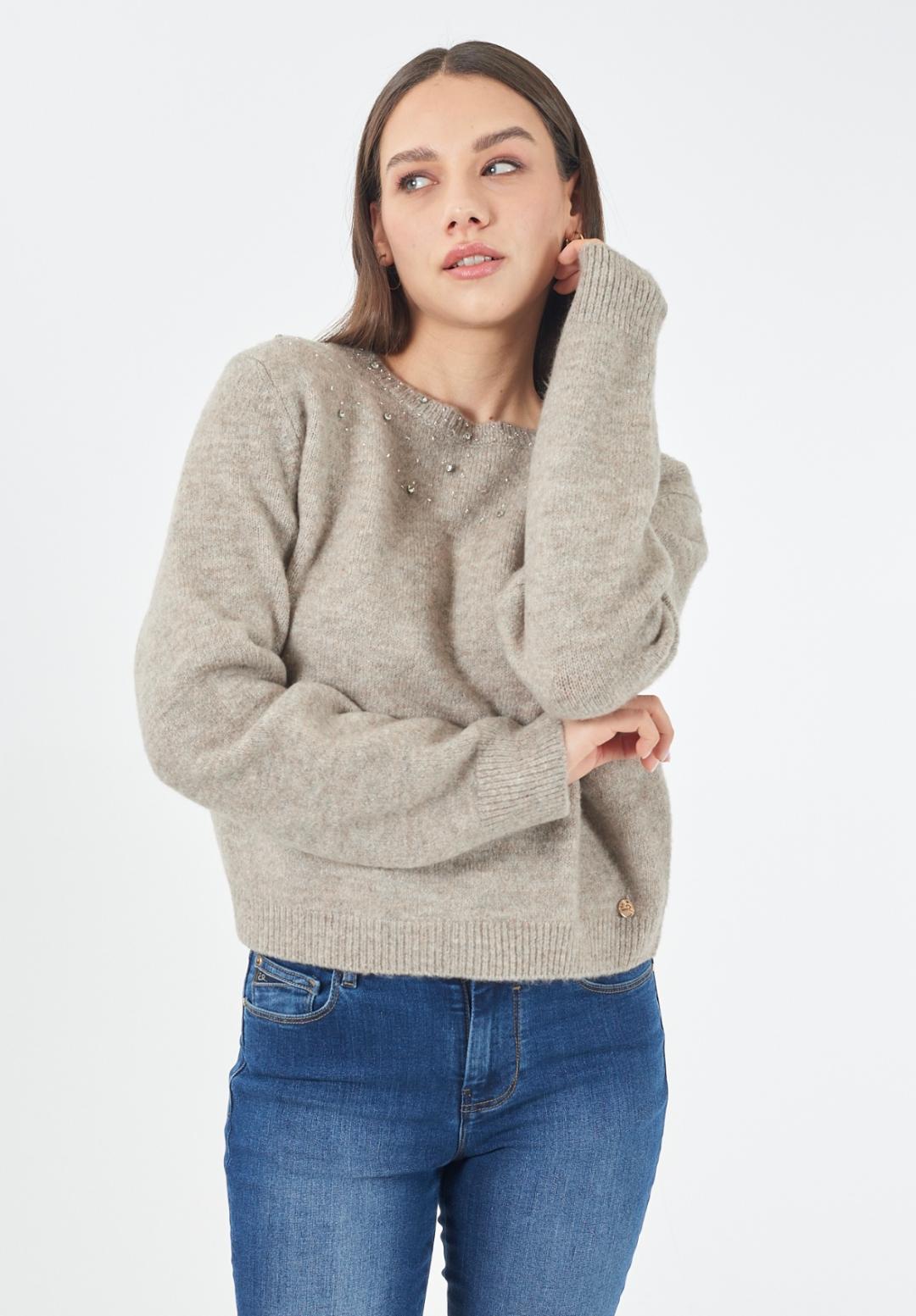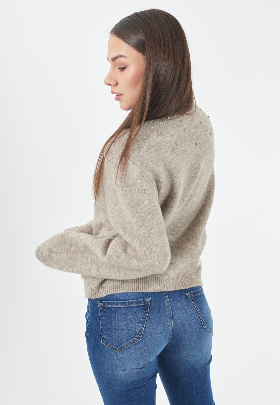 Στρογγυλή λαιμόκοψη στολισμένη με κρύσταλλα & χάντρες
