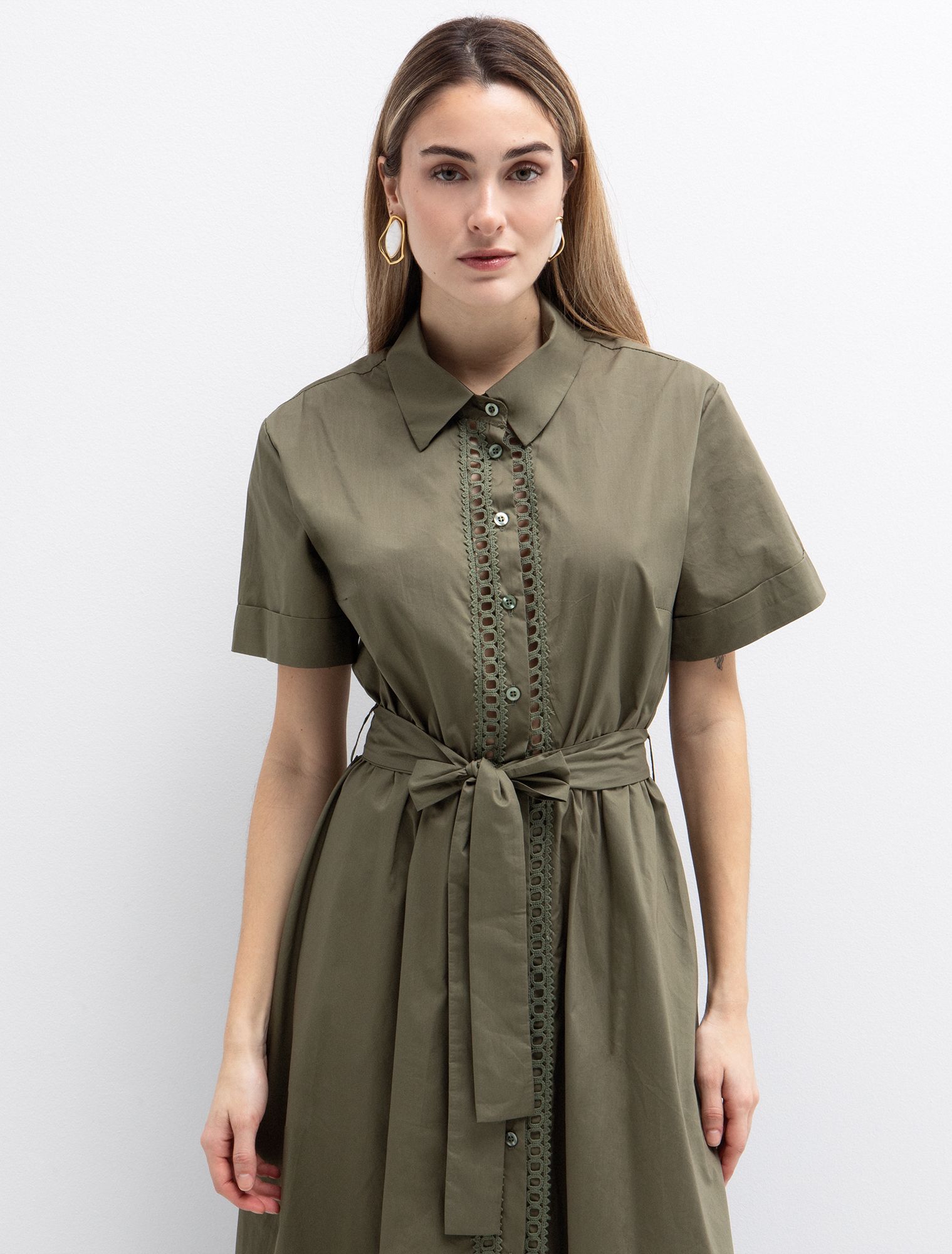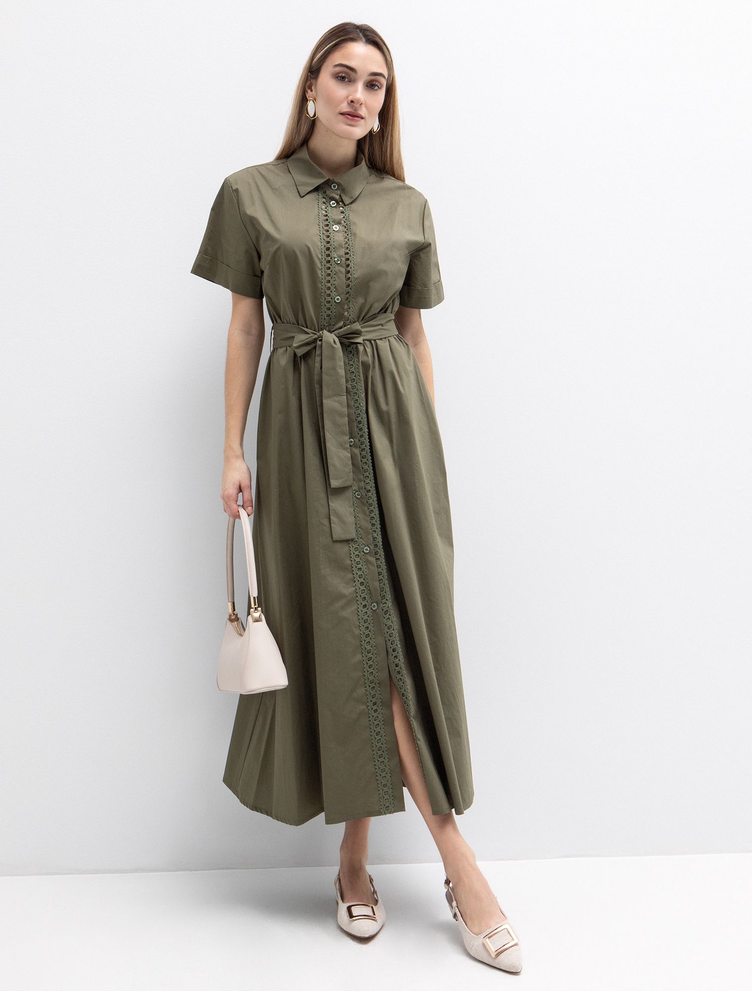 - Midi φόρεμα σε στυλ πουκάμισο από 100% βαμβάκι