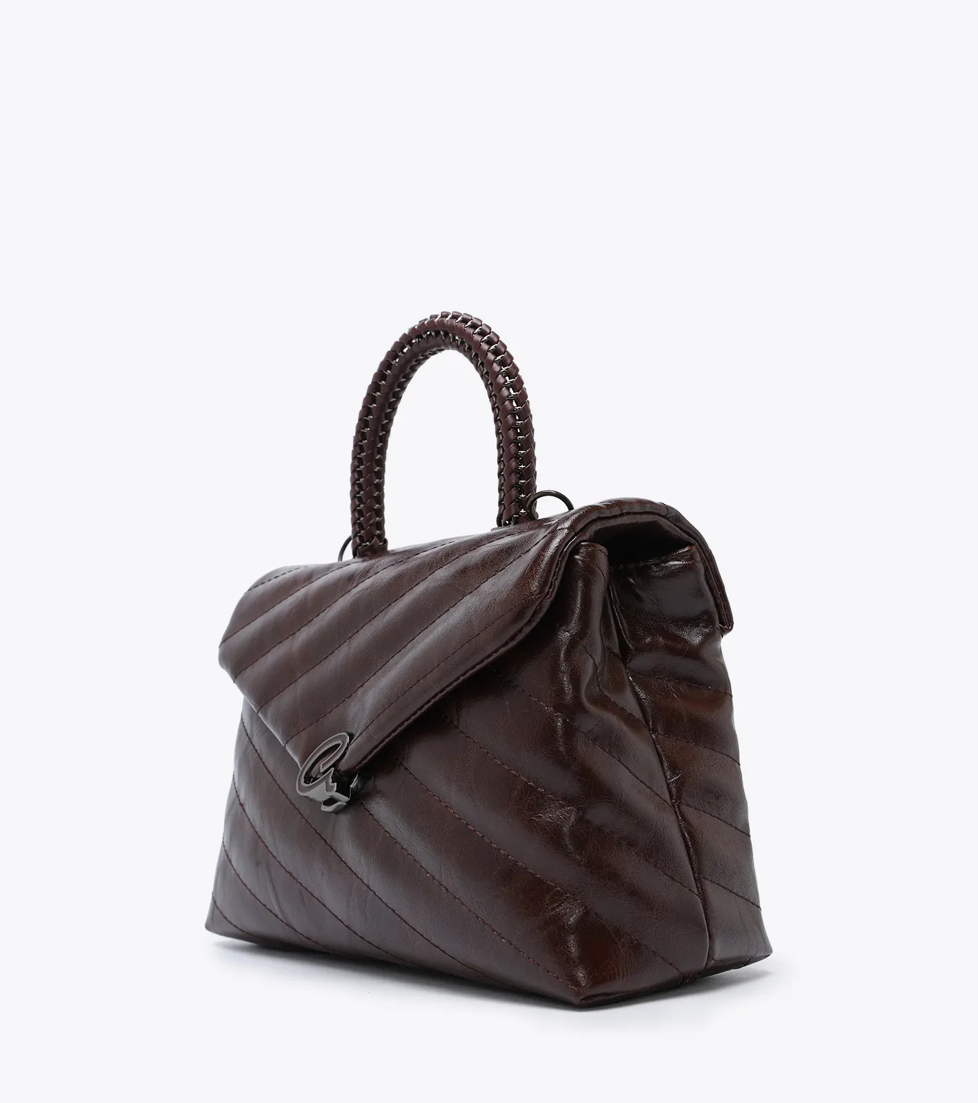 Γυναικείο τσαντάκι χιαστί Valeria από τεχνόδερμα με ραφές, που φέρει απαλή καπιτονέ όψη.
