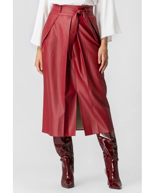 Φούστα eco-δερματίνη με πιέτες σε ύφασμα φυσικό.