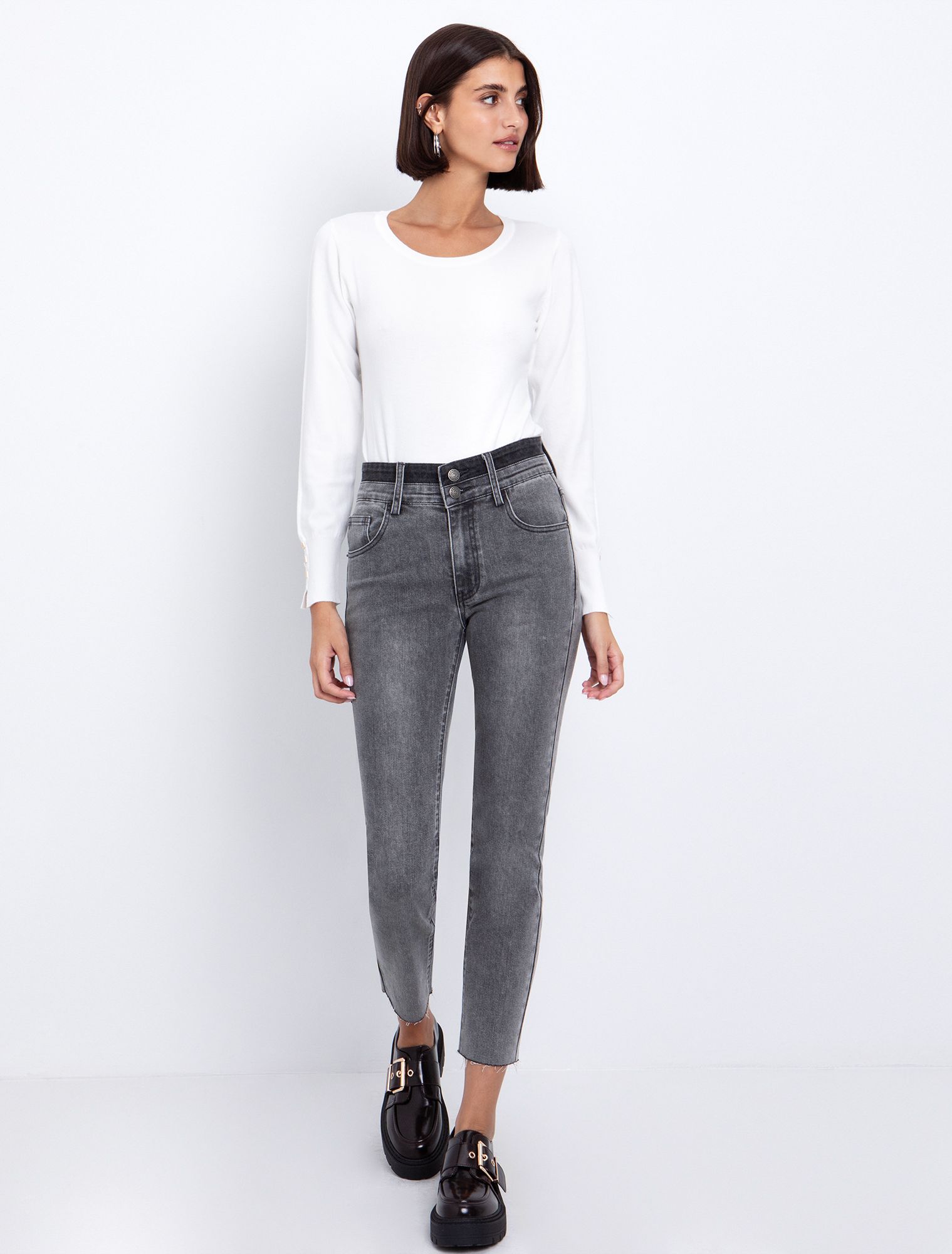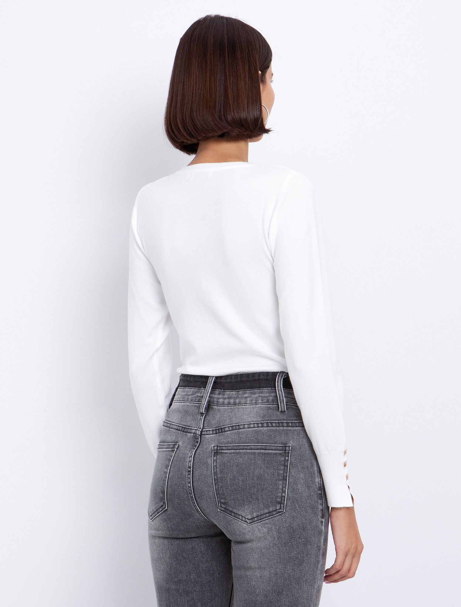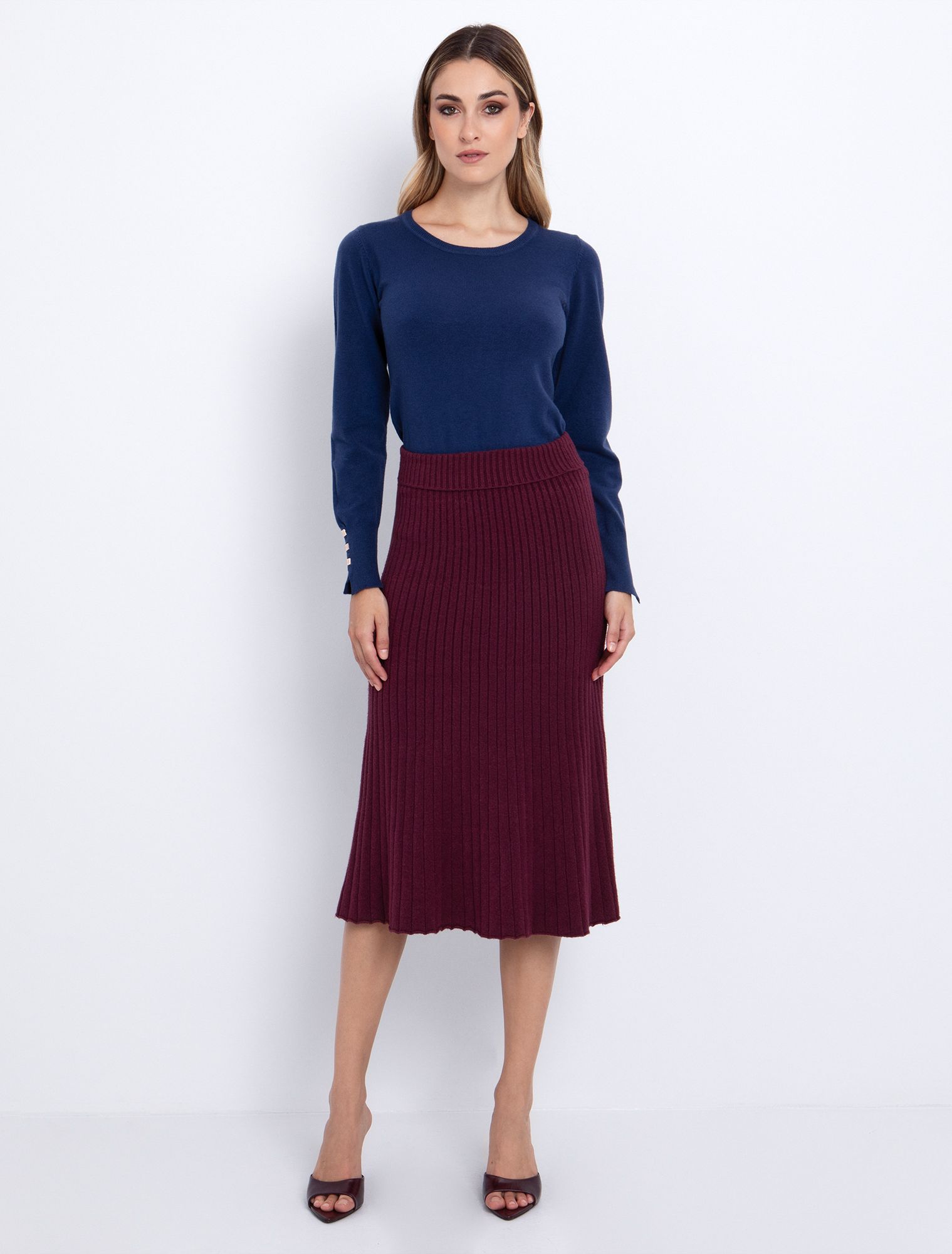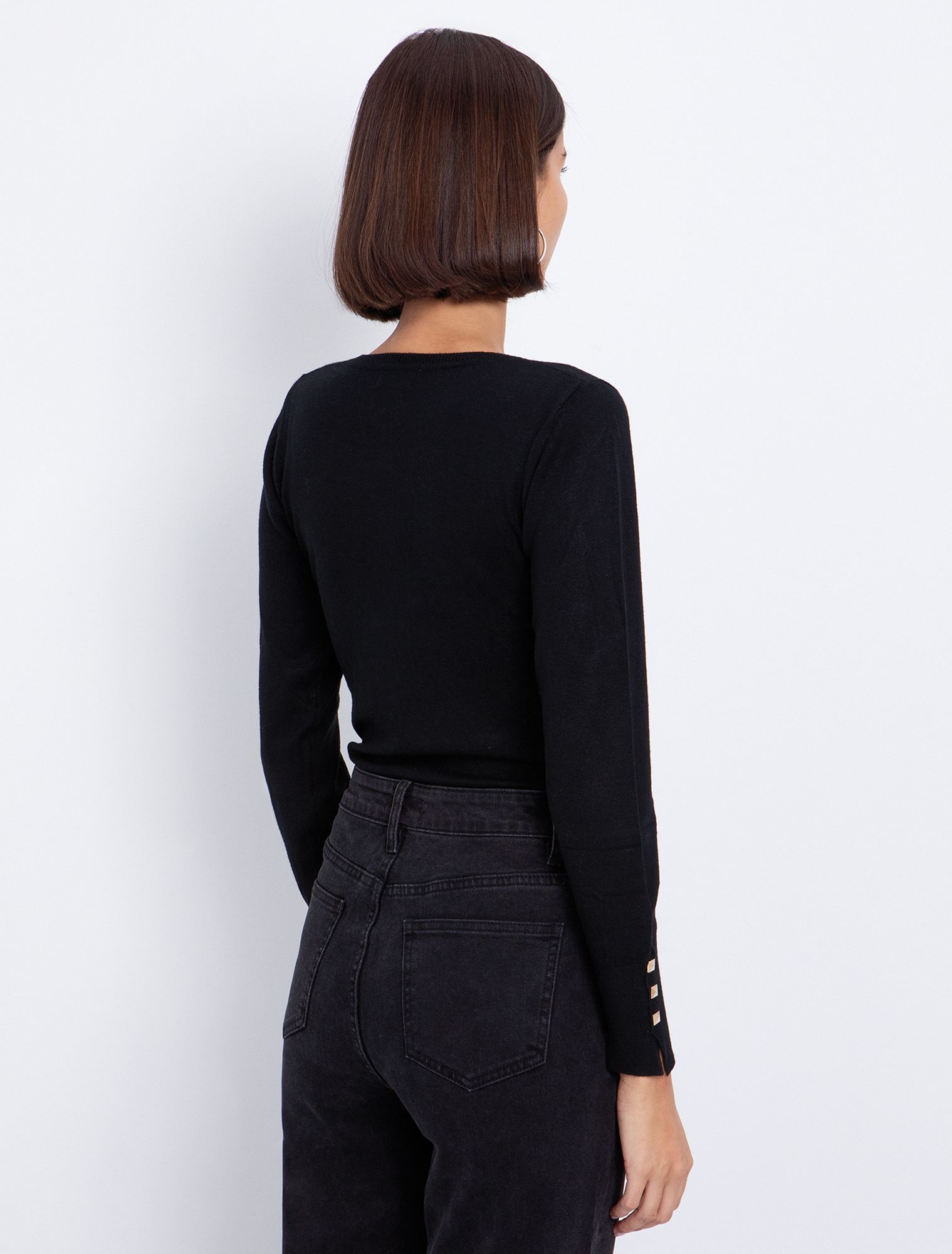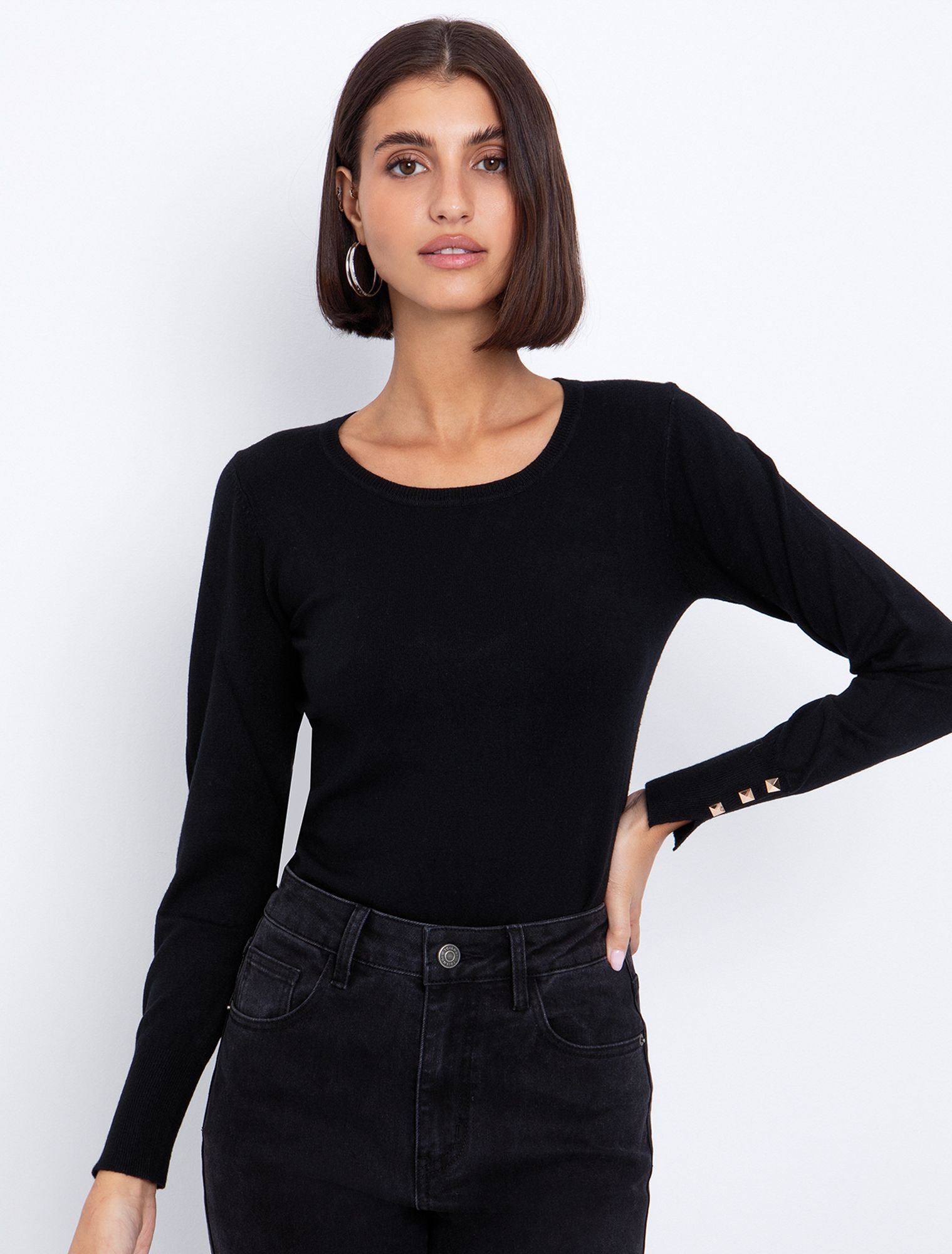 Basic πλεκτή μπλούζα στρογγυλή λαιμόκοψη με χρυσές λεπτομέρειες στα μανίκια
