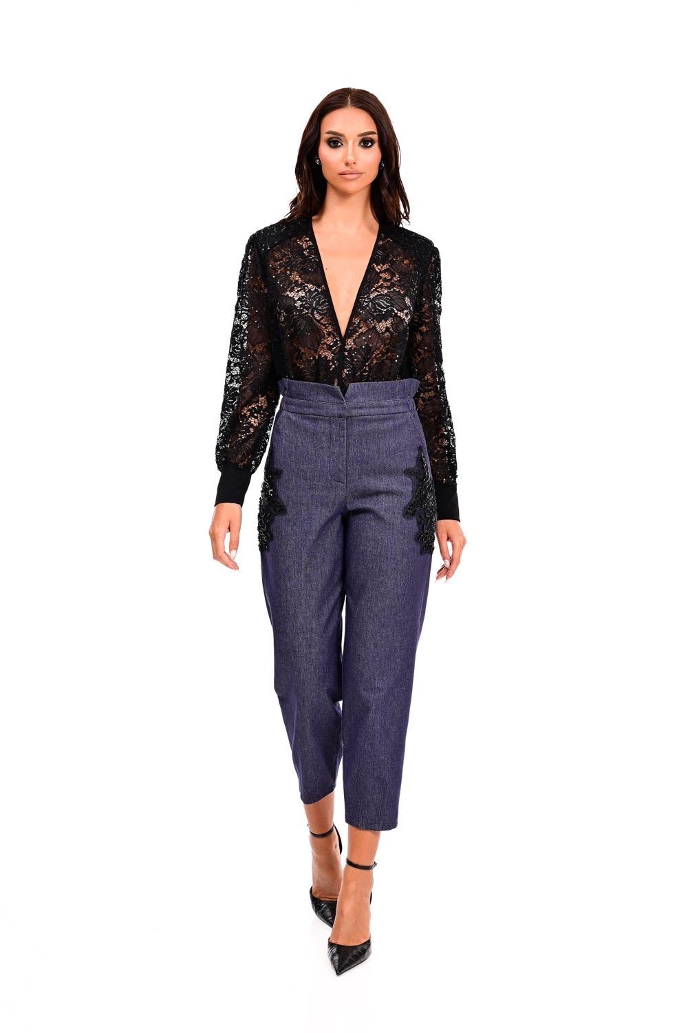 Denim με κεντητή λεπτομέρεια σε carrot γραμμή.