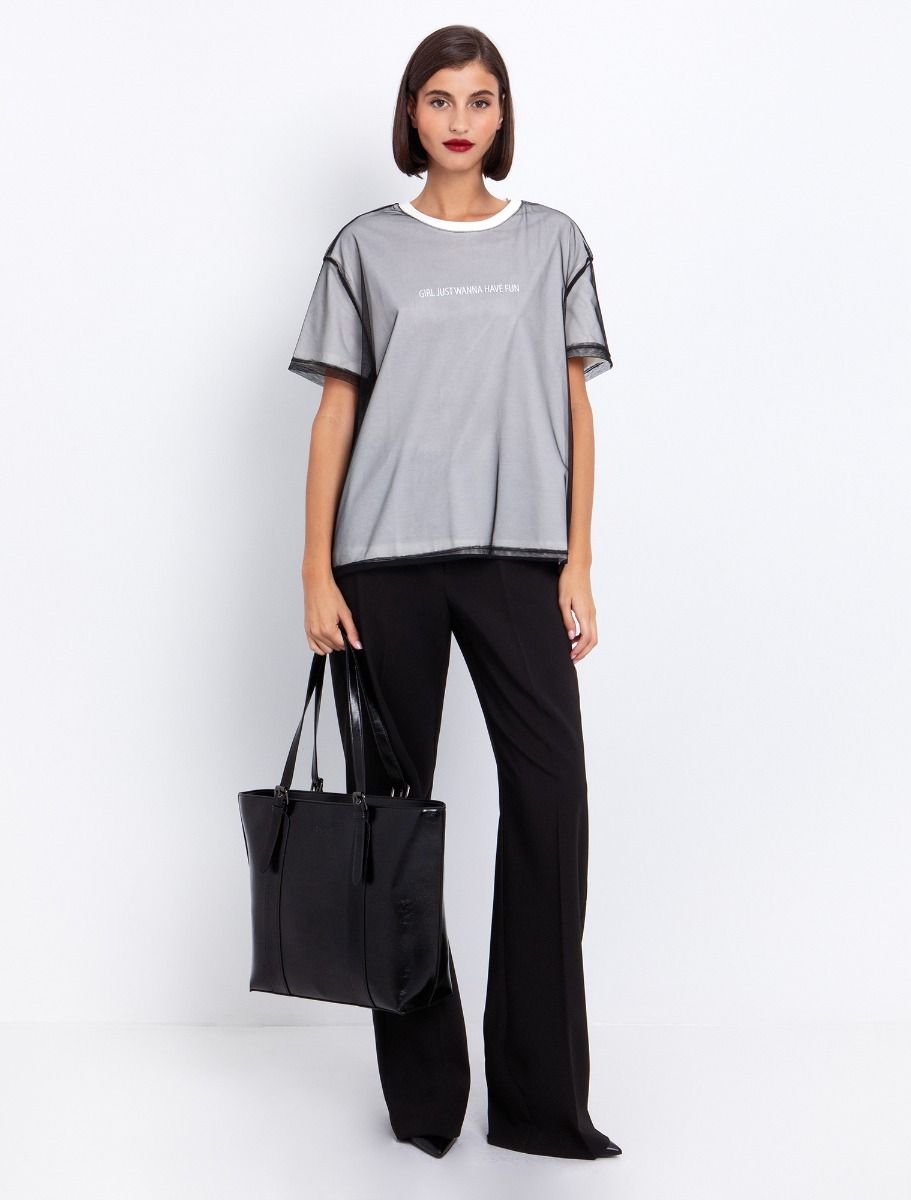 - Στρογγυλή λαιμόκοψη και κοντά μανίκια