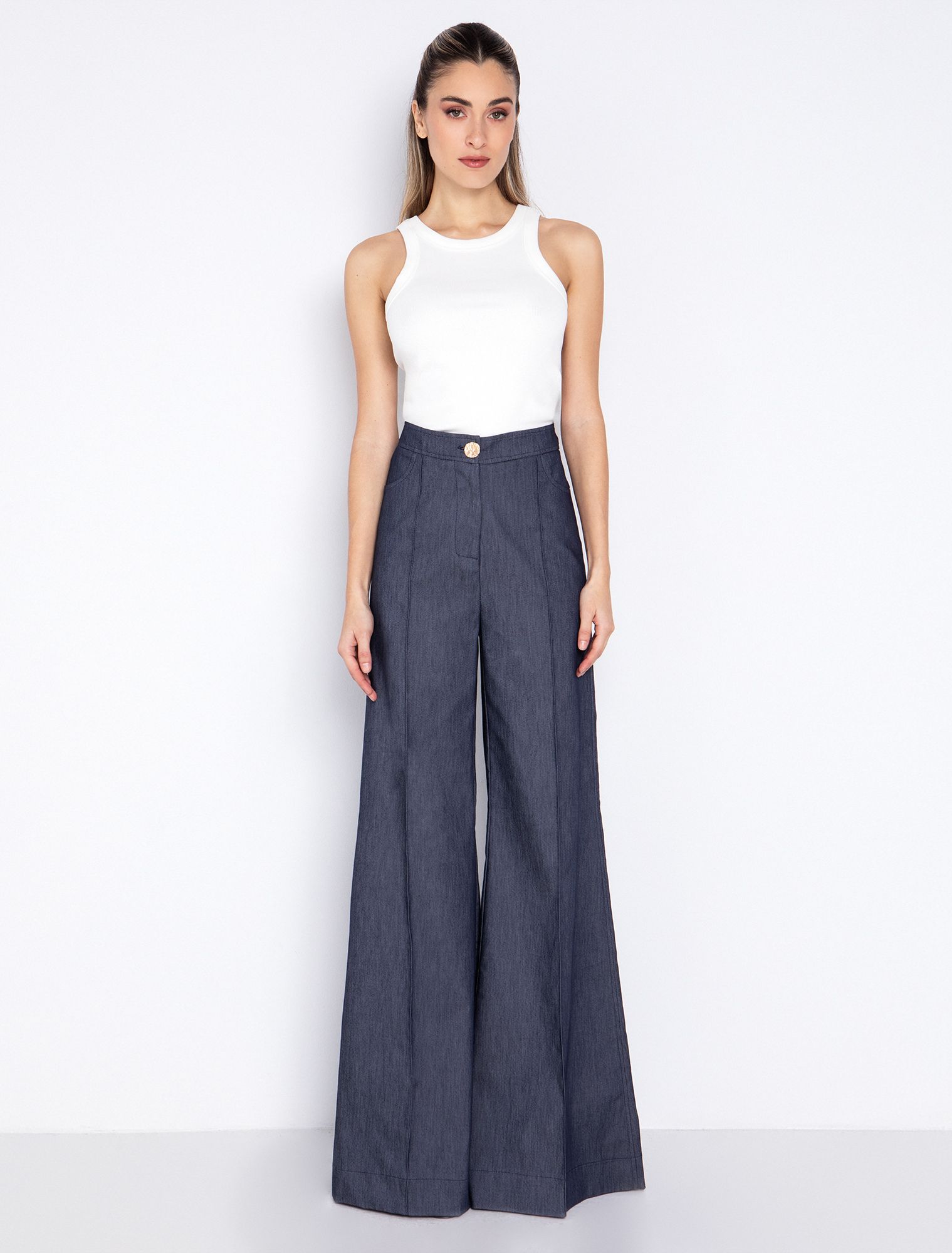 Ψηλόμεσο παντελόνι wide leg παντελόνι σε denim όψη